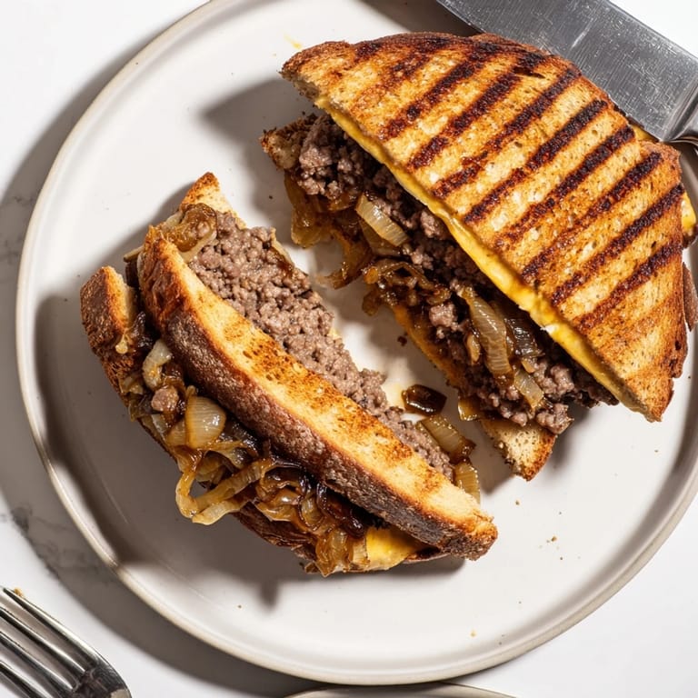 Rye bread is traditional and provides that classic diner flavor, but sourdough works equally well. The key is using sturdy bread that can hold up to the juicy beef patty and caramelized onions without getting soggy during grilling.