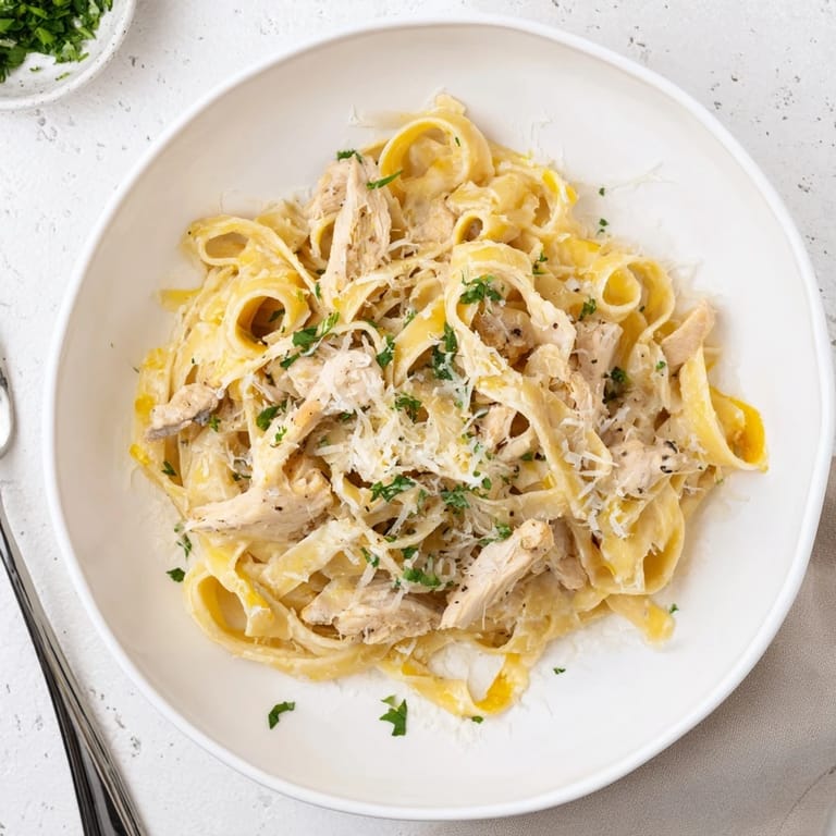 - Top with sliced chicken if using, sprinkle with parsley and extra Parmesan, then serve immediately