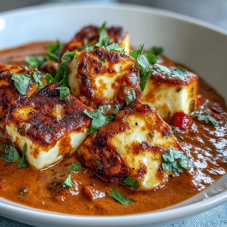 Pin It The first time I served this curry, my skeptical friend who claims to hate cheese actually went back for thirds. Something magical happens when halloumi simmers in that spiced coconut tomato sauce it transforms from salty and squeaky to this tender, flavor soaked sponge that still keeps its satisfying bite.