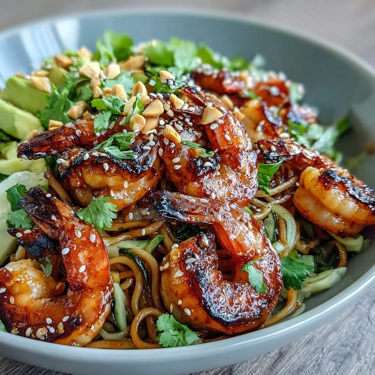 Pin It There's something about summer evenings that makes you crave something light but satisfying, and this grilled shrimp bowl has become my go-to when I want to feel like I'm eating at a bustling Asian street market without leaving my backyard. The first time I made it, I was honestly just trying to use up shrimp before a trip, but the way those charred edges caught the grill's heat while the cool noodles waited below completely changed my mind about what a weeknight dinner could be. My partner took one bite and asked if we could make it every week, which is saying something in a household that gets bored easily. The magic is in how quickly it comes together—barely thirty minutes from start to finish—yet it tastes like you've been fussing in the kitchen all afternoon.