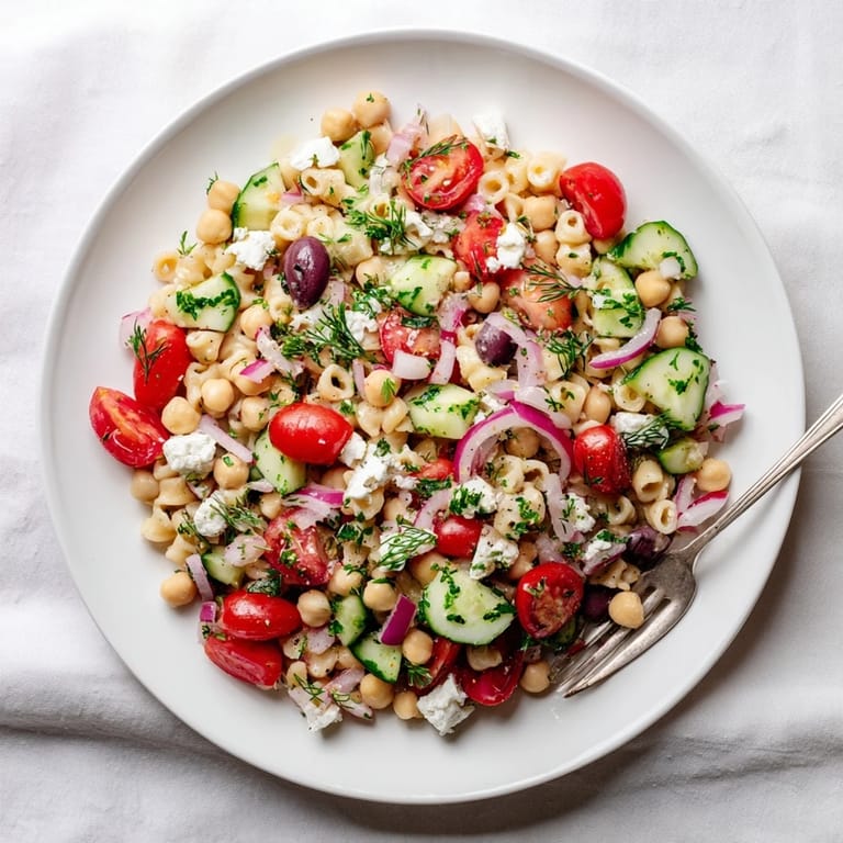 This keeps beautifully in the fridge for three to four days, though the pasta will continue absorbing the dressing. If you plan to meal prep it, reserve some extra dressing to refresh the salad before serving. The herbs will darken but the flavor remains vibrant.