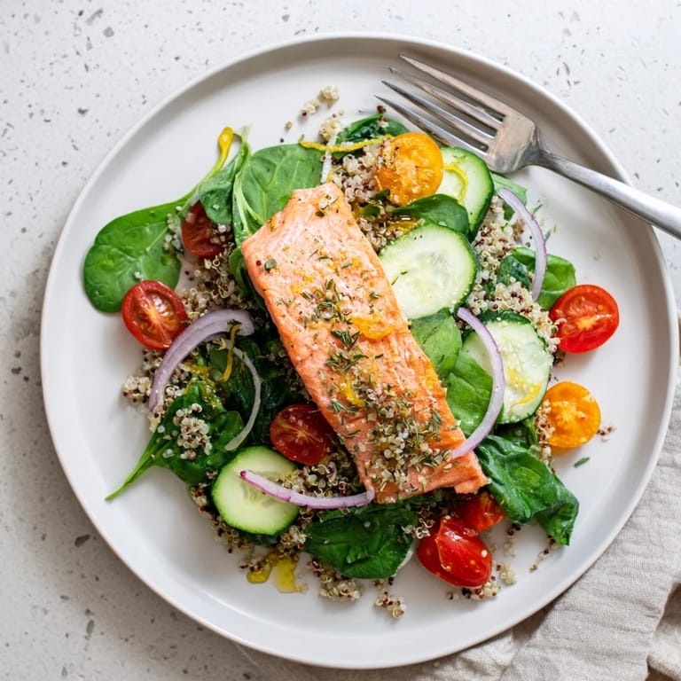 Pin It My kitchen smelled like citrus and butter on a Tuesday night when I realized I'd been overthinking dinner for weeks. I had salmon thawing, quinoa in the pantry, and a fridge drawer full of wilting herbs that deserved better. What started as a rescue mission turned into one of those meals where everyone went quiet for the first few bites. The lemon zest on the salmon created this bright, aromatic crust that made the whole dish feel intentional, even though I was mostly winging it.