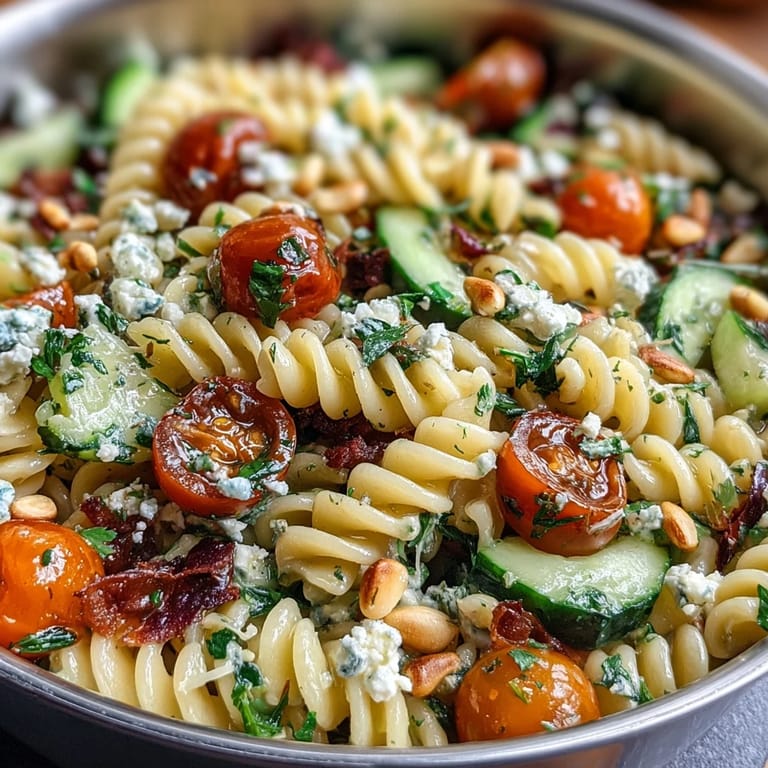 The magic of this pasta salad lies in the lemon vinaigrette—a simple yet sophisticated dressing that transforms ordinary pasta into something extraordinary. Fresh lemon juice and zest provide a double dose of citrus brightness, while Dijon mustard adds subtle depth and helps emulsify the dressing. A touch of garlic and optional honey balance the acidity, creating a harmonious flavor profile that coats every piece of pasta and vegetable. Unlike mayonnaise-based pasta salads that can feel heavy and cloying, this vinaigrette keeps things light and refreshing, allowing the natural flavors of the fresh vegetables to shine through. The combination of spring onions and parsley adds an aromatic freshness that elevates the entire dish, while optional feta cheese and toasted pine nuts provide creamy richness and nutty crunch for those who want a more indulgent version.