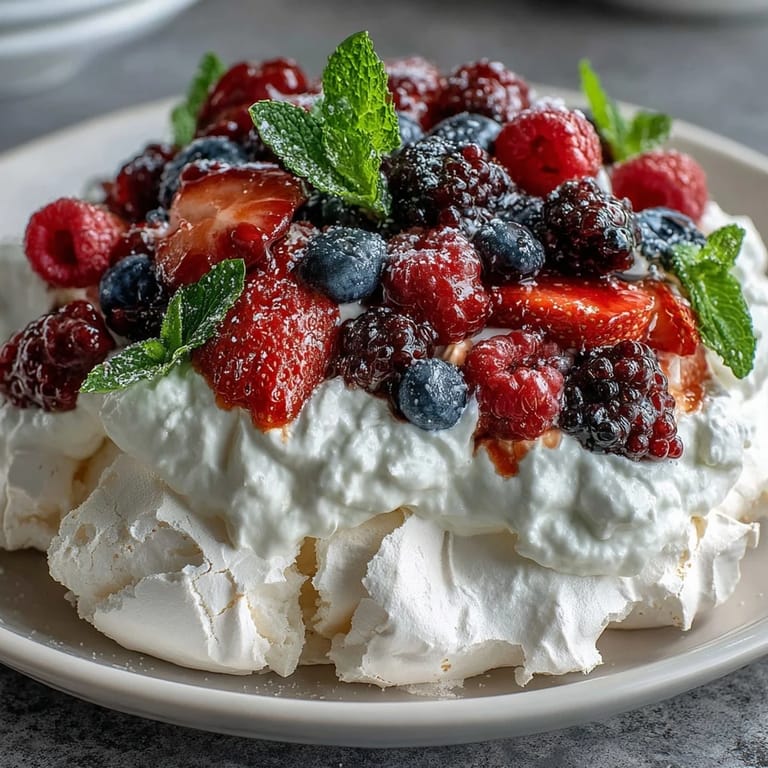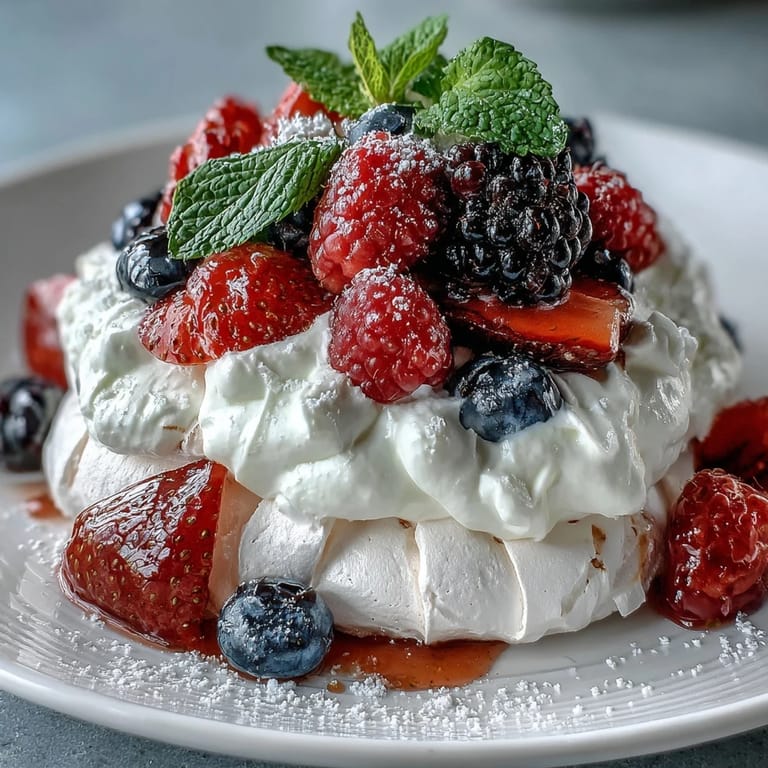 I once made Pavlova for brunch on a Saturday, and my friends kept sneaking into the kitchen to ask how it was coming along. Someone joked that the house smelled sweeter than usual, and we laughed as the oven gave off a soft warmth. I remember carefully shaping the meringue while chatting about travel plans, and that little moment remains tied to this recipe whenever I make it. The final reveal, with bright berries and swirls of cream, always brings out spontaneous compliments.