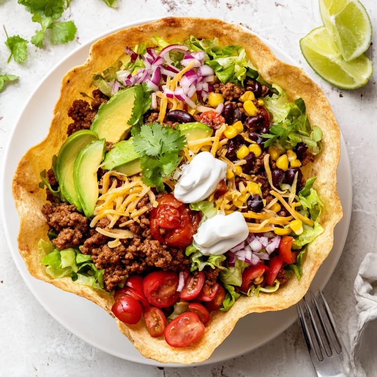 Pin It The first time I made taco salad, my kitchen smelled like a Tex-Mex cantina and my roommate wandered in asking if I'd secretly ordered takeout. I'd spent the afternoon experimenting with tortilla bowls, determined to recreate that satisfying crunch you get from restaurants but never quite achieve at home. That evening, sitting around our mismatched dining table with friends, tortilla bowls overflowing and toppings spilling onto plates, I realized this messy, vibrant dinner was exactly what weeknight cooking should be. Now whenever I need something that feels like a party but comes together in under an hour, this recipe is my go-to.